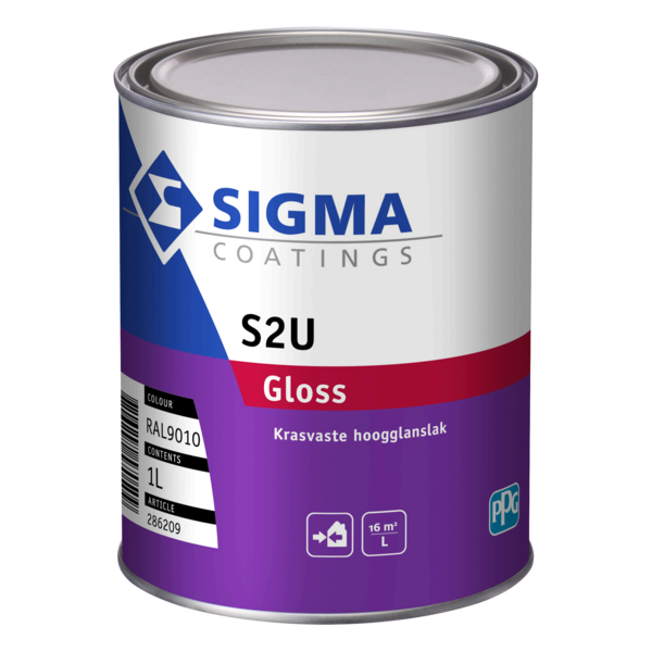 Sigma S2U Gloss is een duurzame, hoogglanzende lakverf voor buiten op solventbasis (polyurethaan alkyd). Hoge weervastheid, kras- en slijtvast. Onderhoudsvrij tot 8 jaar. Verkrijgbaar in 0,5 L, 1 L en 2,5 L.