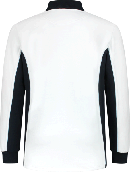 Polosweater Wit / Navy. Materiaal: 340 grams, 50% kwaliteits-katoen / 50% polyester. Zware kwaliteit voor professionals.
