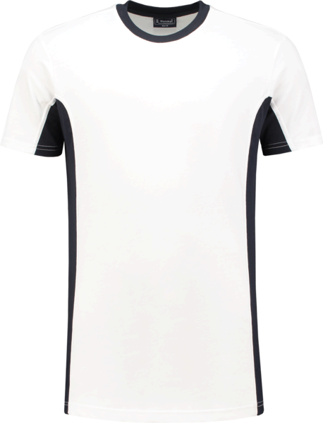 T-Shirt Wit / Navy . Materiaal: 190 grams, 100% kwaliteits-katoen (gekamd) Zeer fraaie