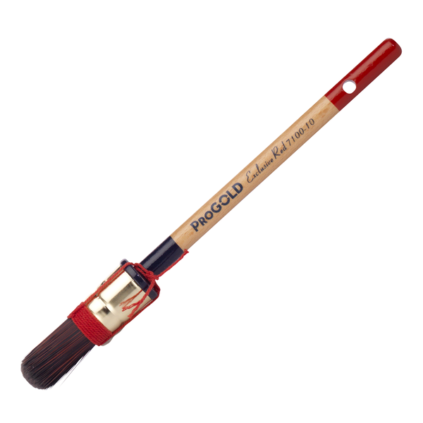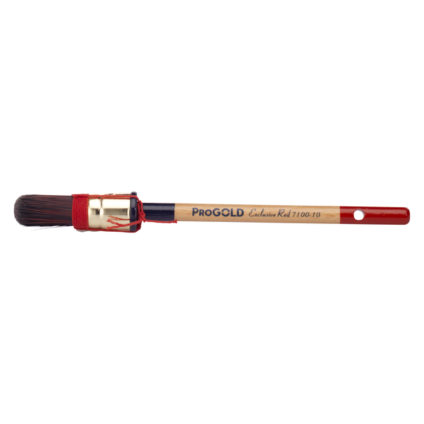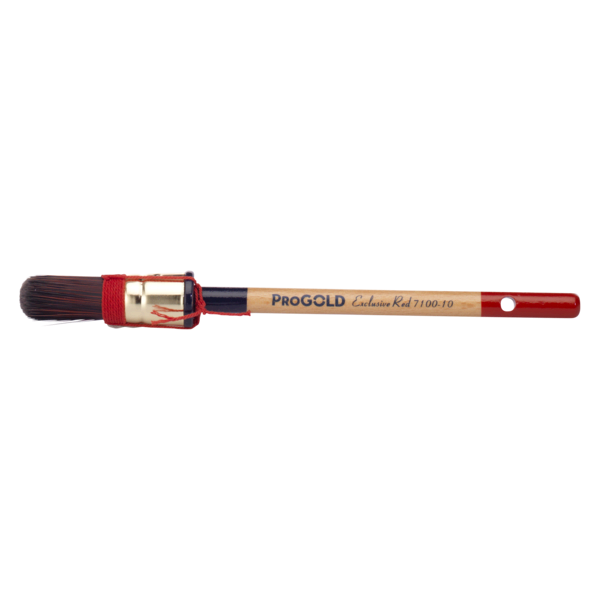 Handgemaakte professionele ronde patentpuntkwast met blank gelakte steel.
