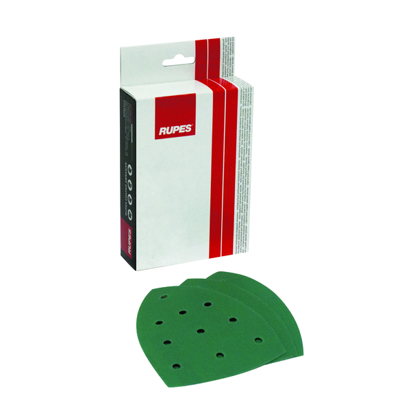 RUPES HQ400 Delta schuurpapier met 15 stofgaten en klitteband hechting heeft geen papier als drager maar een sterke polyesterfilm die ongevoelig is voor vocht.