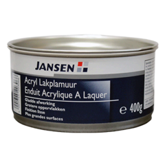Jansen Acryl lakplamuur maakt het mogelijk is eenvoudig grote oppervlakken te plamuren. heeft een gladde afwerking, waarbij schuren niet noodzakelijk is. Daarnaast is het mogelijk om met deze lakplamuur meerdere lagen per dag aan te brengen.