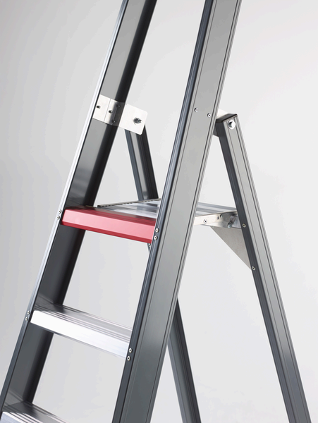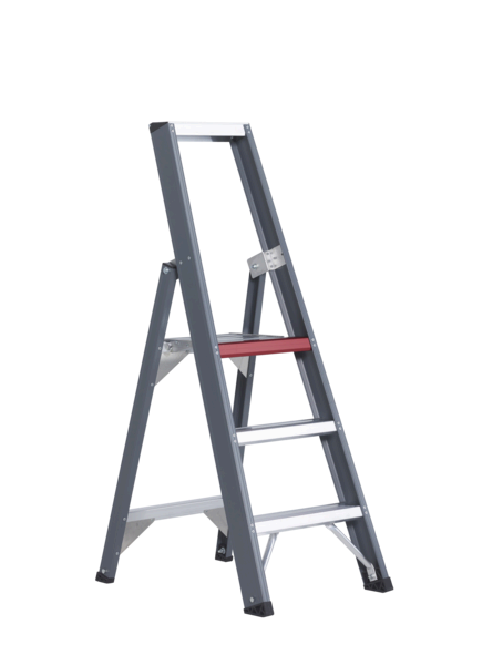 Deze trap heeft een handig gereedschapbakje voor gereedschap zodat jij je handen vrijhoudt