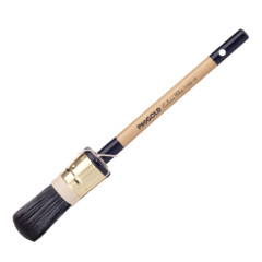 Ronde kwast van gemodificeerde polystervezels, geschikt voor watergedragen lakken en beitsen.