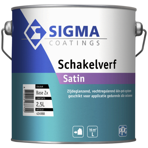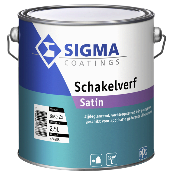 Sigma Schakelverf Satin is een zijdeglanzende één-pot-lakverf voor buiten, die gronden, overgronden én aflakken in één product combineert. Ideaal voor geveltimmerwerk. Verkrijgbaar in 1 L en 2,5 L.