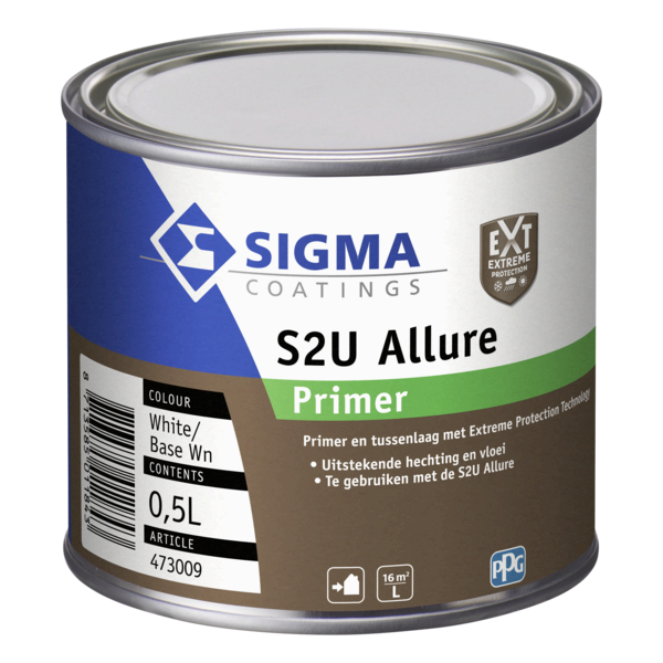 Sigma S2U Allure Primer is een sneldrogende, veelzijdige grondverf voor buiten. Het Dual Guard System biedt tot 10 jaar onderhoudsarm houtwerk. Geschikt voor hout, metaal en kunststof. Verkrijgbaar in 0,5 L, 1 L en 2,5 L.