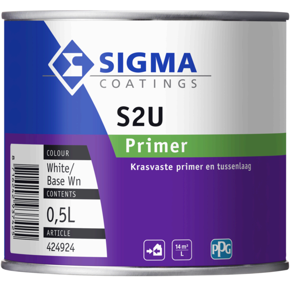 Sigma S2U Primer is een hoogwaardige polyurethaan alkyd grondverf voor buitenhout. Biedt uitstekende hechting, vulling en weersbestendigheid, zelfs bij 0 °C. Sneldrogend, duurzaam en verkrijgbaar in 0,5 L, 1 L en 2,5 L.