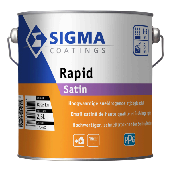 Sigma Rapid Satin is een zijdeglanzende lakverf voor buiten op basis van gemodificeerde alkydhars. Ideaal voor geveltimmerwerk en metaal, met uitstekende koudedroging, hoge dekkracht en een elastische laklaag. Verkrijgbaar in 1 L en 2,5 L.