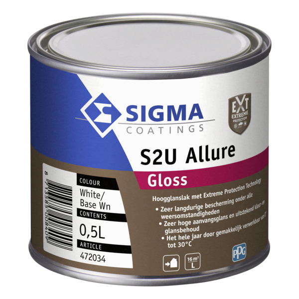 Sigma S2U Allure Gloss is een extreem duurzame hoogglans lakverf voor buiten. Weerbestendig, krasvast en kleurstabiel. Geschikt voor hout en metaal. Leverbaar in 0,5 L, 1 L en 2,5 L.