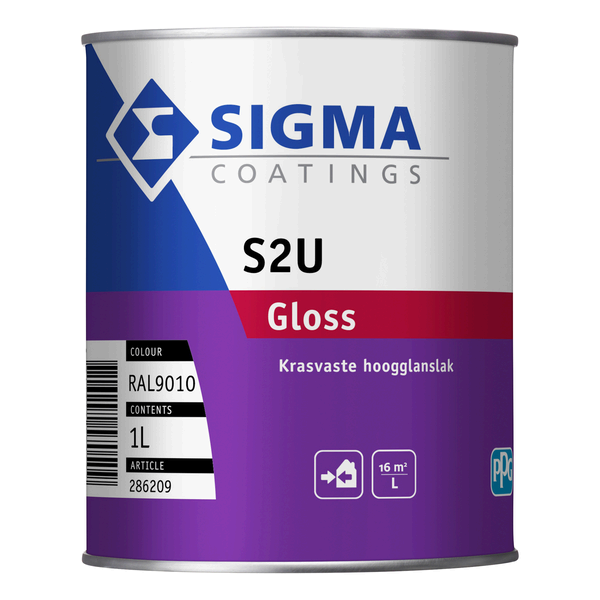 Sigma S2U Gloss is een duurzame, hoogglanzende lakverf voor buiten op solventbasis (polyurethaan alkyd). Hoge weervastheid, kras- en slijtvast. Onderhoudsvrij tot 8 jaar. Verkrijgbaar in 0,5 L, 1 L en 2,5 L.