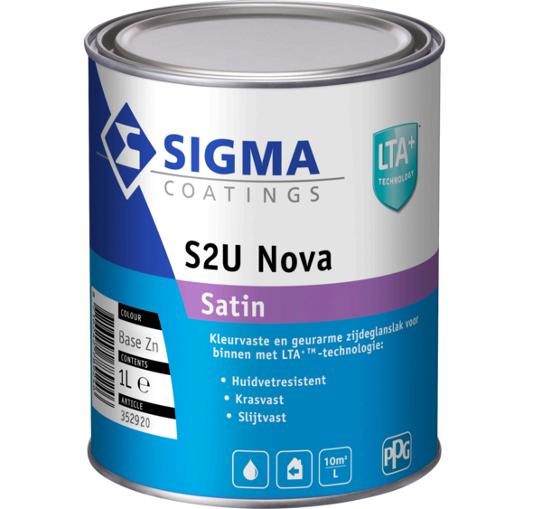 Sigma S2U Nova Satin is een watergedragen, zijdeglanzende lakverf voor binnen met LTA+ technologie. Extreem kras- en huidvetbestendig, kleurvast en ideaal voor intensief gebruikte oppervlakken. Verkrijgbaar in 0,5 L, 1 L en 2,5 L.