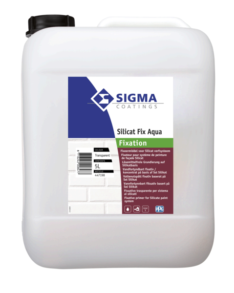 Sigma Silicat Fix Aqua is een watergedragen fixeermiddel voor het fixeren van licht tot sterk zuigende minerale ondergronden om glansbontheid te voorkomen. Het fixeren van licht tot matig zuigende minerale ondergronden die licht poederen