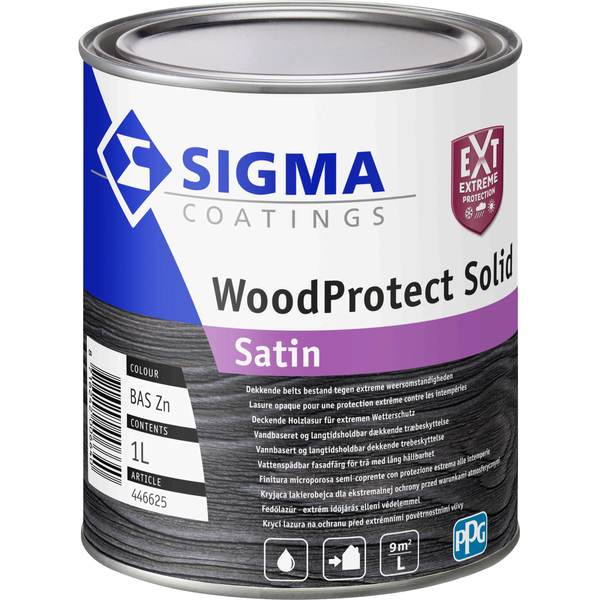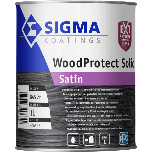 Sigma WoodProtect Solid Satin is een watergedragen, dekkende beits voor buiten met zijdeglans-afwerking. Ideaal voor rabatwerk, gevelhout, tuinhuizen en ander houtwerk dat kleur, glans én bescherming verdient.