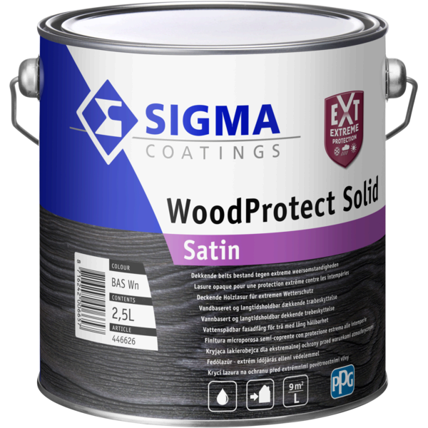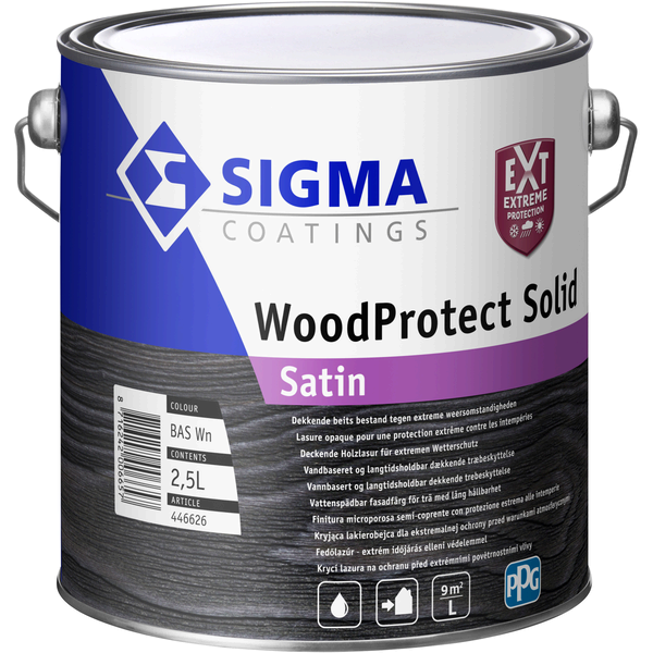 Sigma WoodProtect Solid Satin is een watergedragen, dekkende beits voor buiten met zijdeglans-afwerking. Ideaal voor rabatwerk, gevelhout, tuinhuizen en ander houtwerk dat kleur, glans én bescherming verdient.