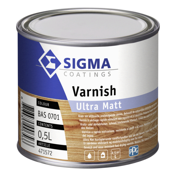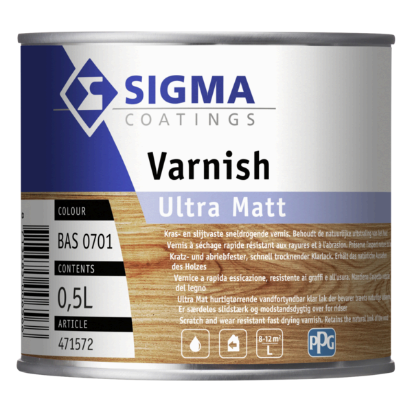 Sigma Varnish Ultra Matt is een watergedragen, blanke lak voor binnen.