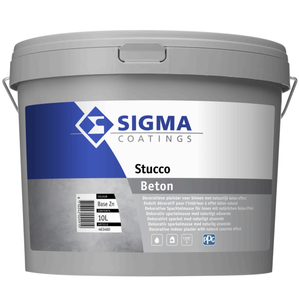 Decoratieve pleister met een natuurlijk beton-effect voor binnen op basis van kunstharsdispersie.