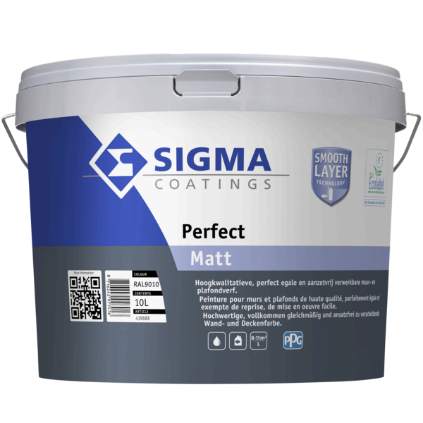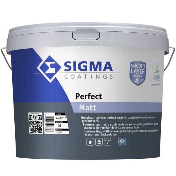 Sigma Perfect Matt is de perfecte matte muurverf voor binnen. De muurverf is aanzetvrij, bij te werken zonder kleurverschil en geschikt voor wanden en plafonds. Koop Sigma Perfect Matt voor een strak en egaal resultaat in elke ruimte.